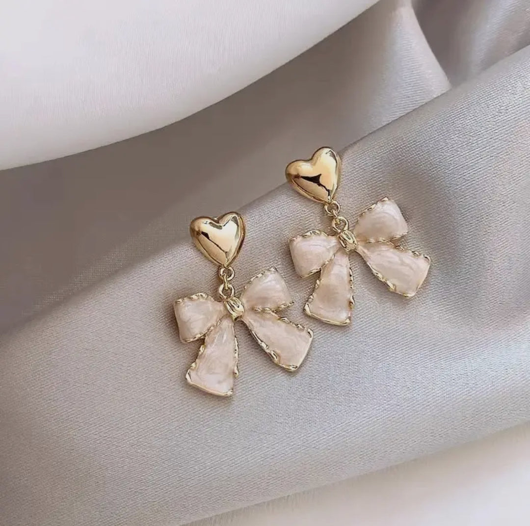 Gold Bow Heart Studs