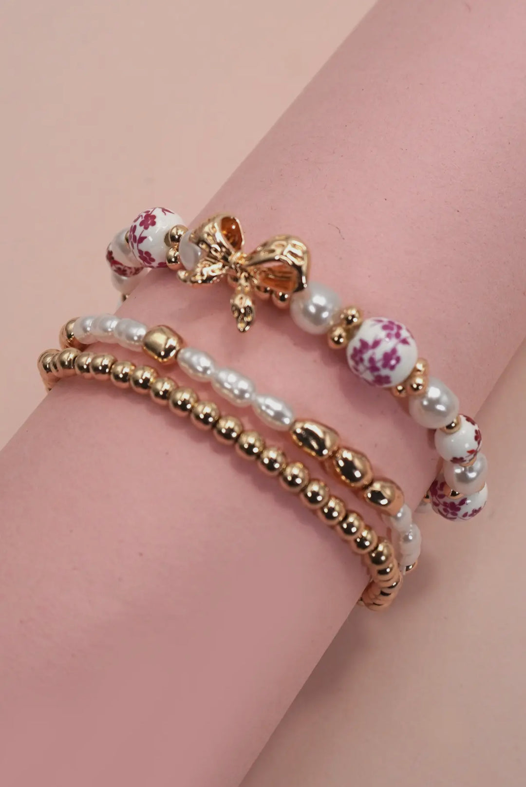 Pink Porcelain Ceramic Gold Bracelet Set