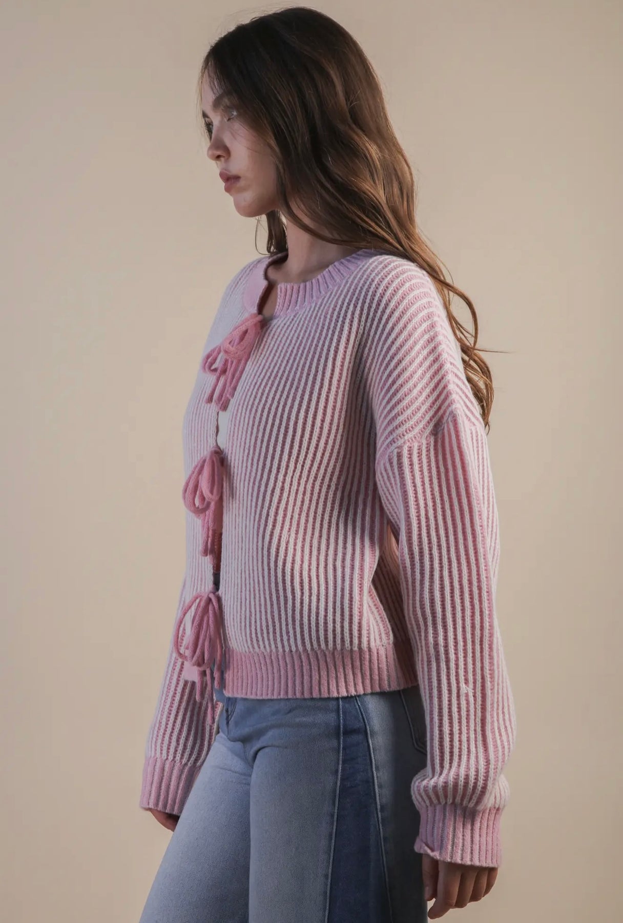 Talyn | Front Tie Two Tone Ribbed Cardigan